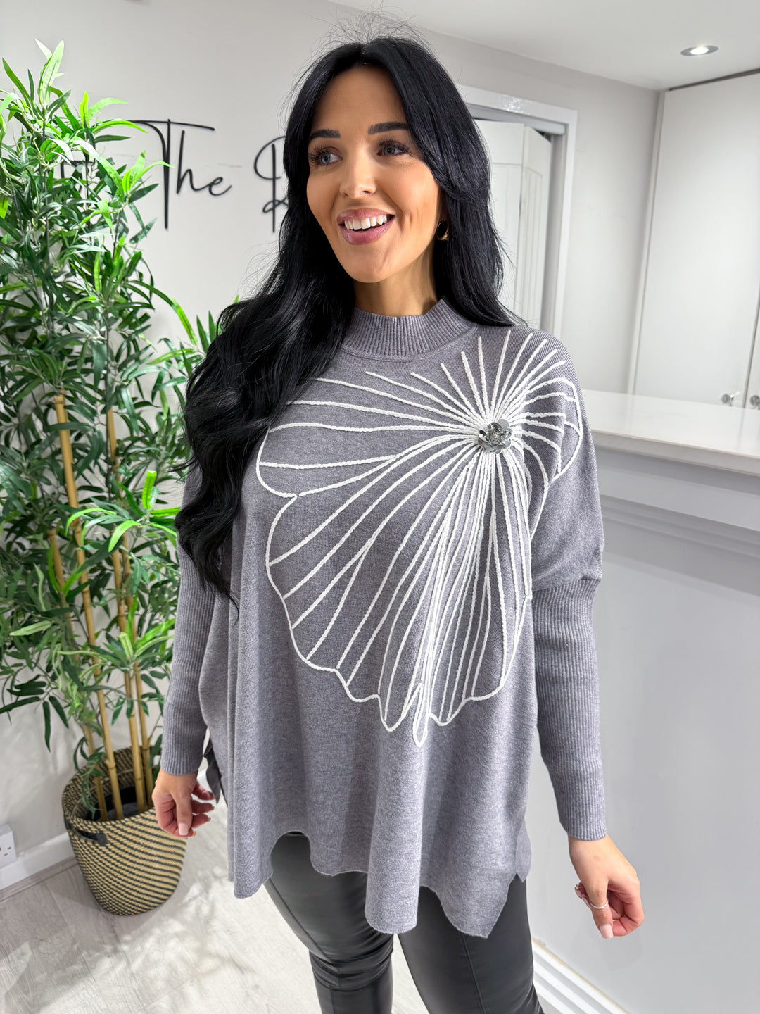 Monica Embroidery Flower Top - Grey