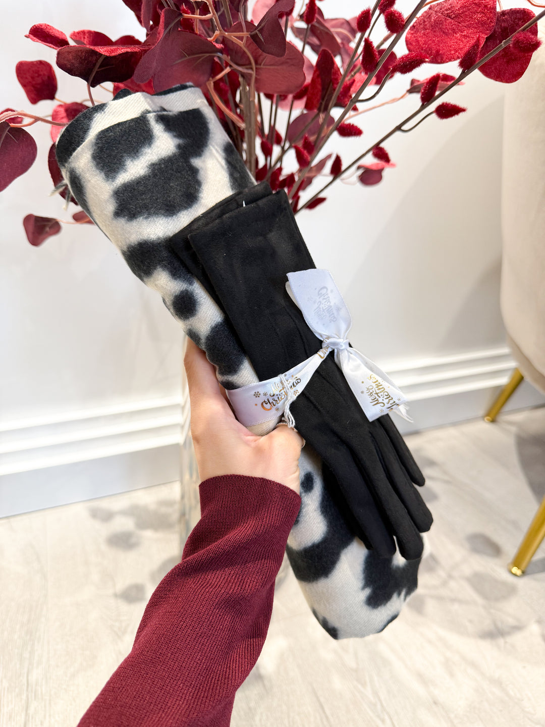 Leopard Heart Patch Scarf - Black