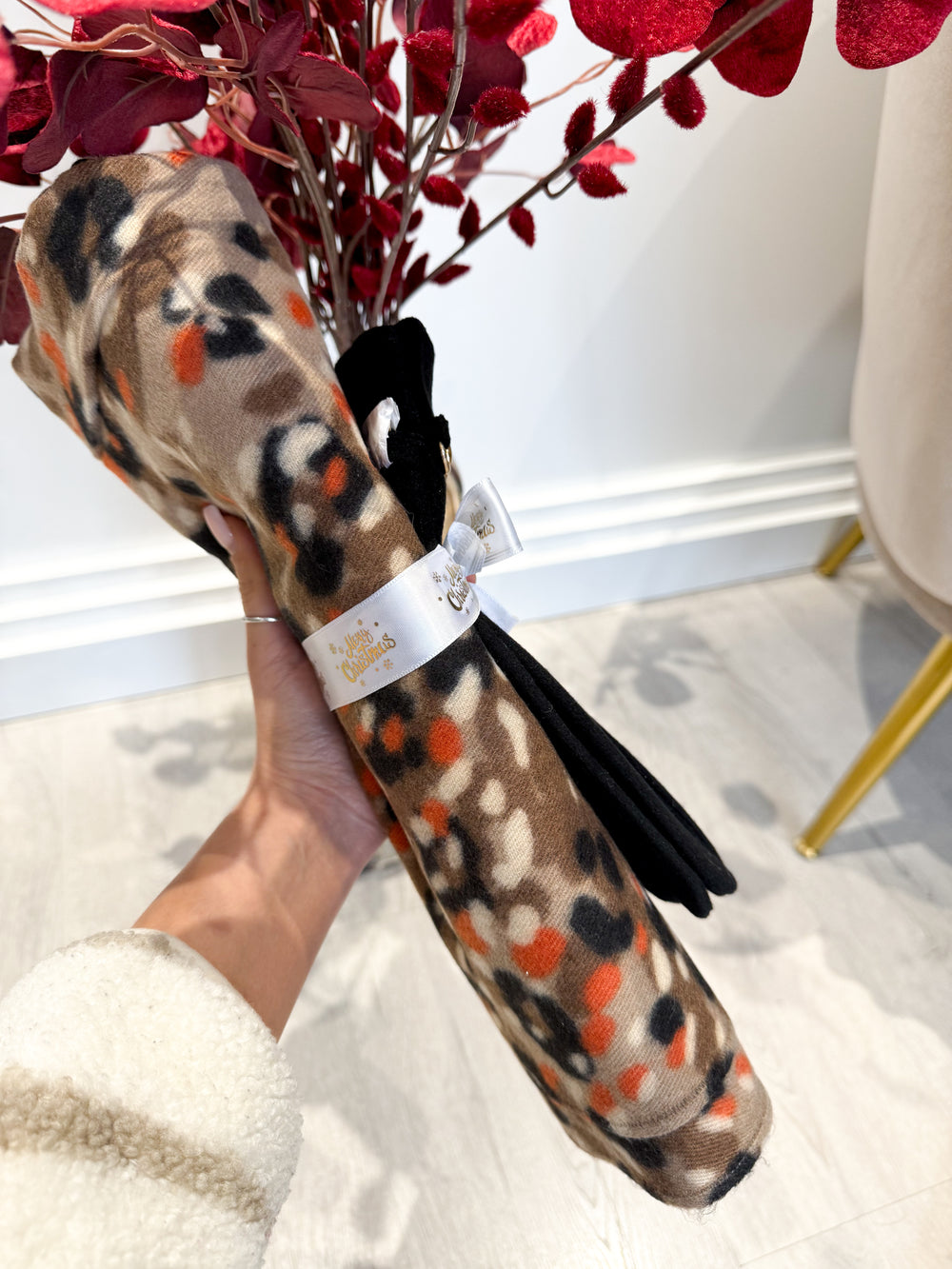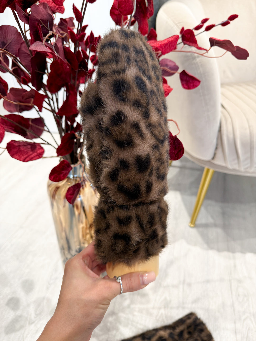 Faux Fur Leopard Mittens
