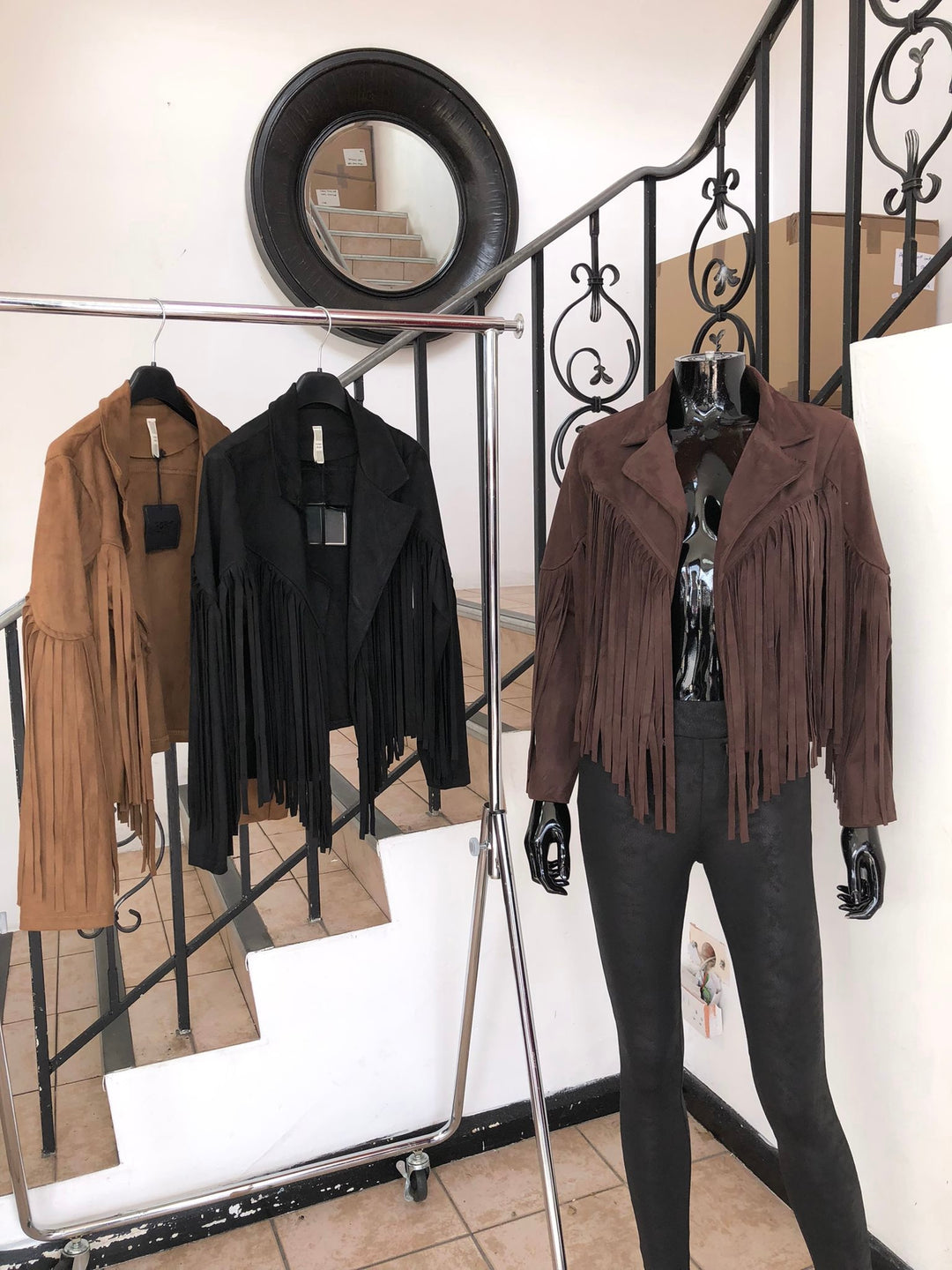 Faux Suede Tassel Jacket - Black
