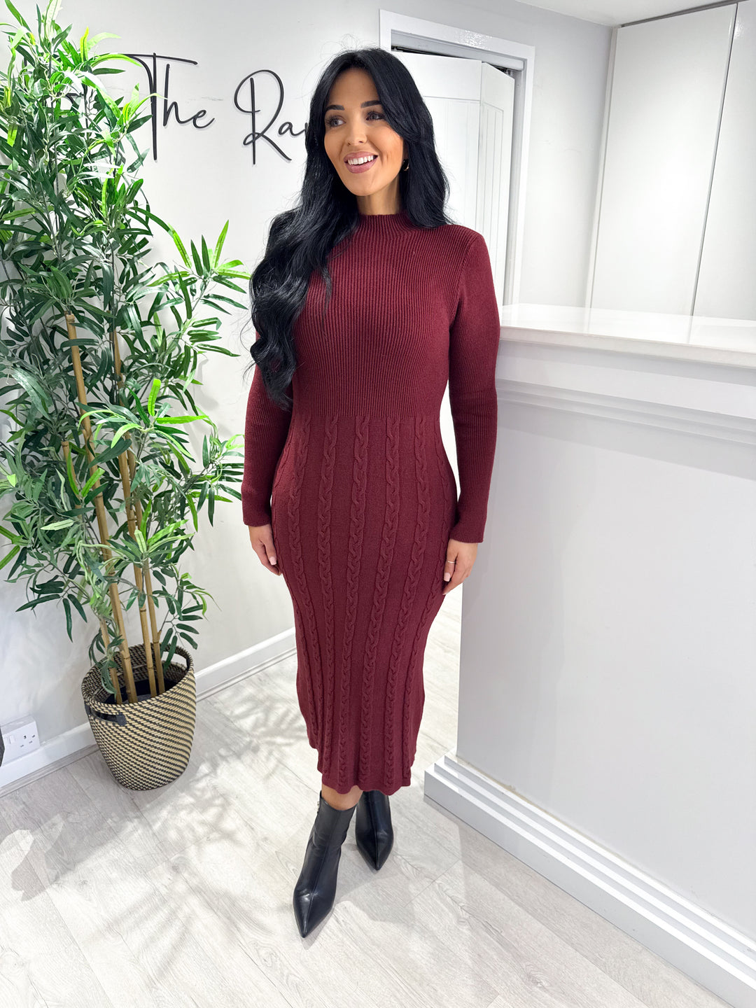 Plait Knit Dress - Wine