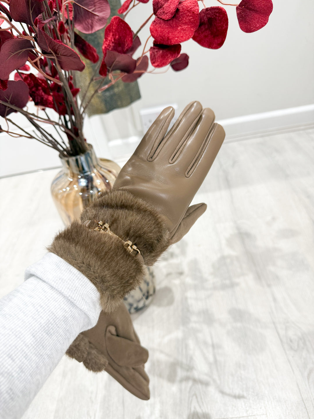 Chain/Pu Gloves - Mocha