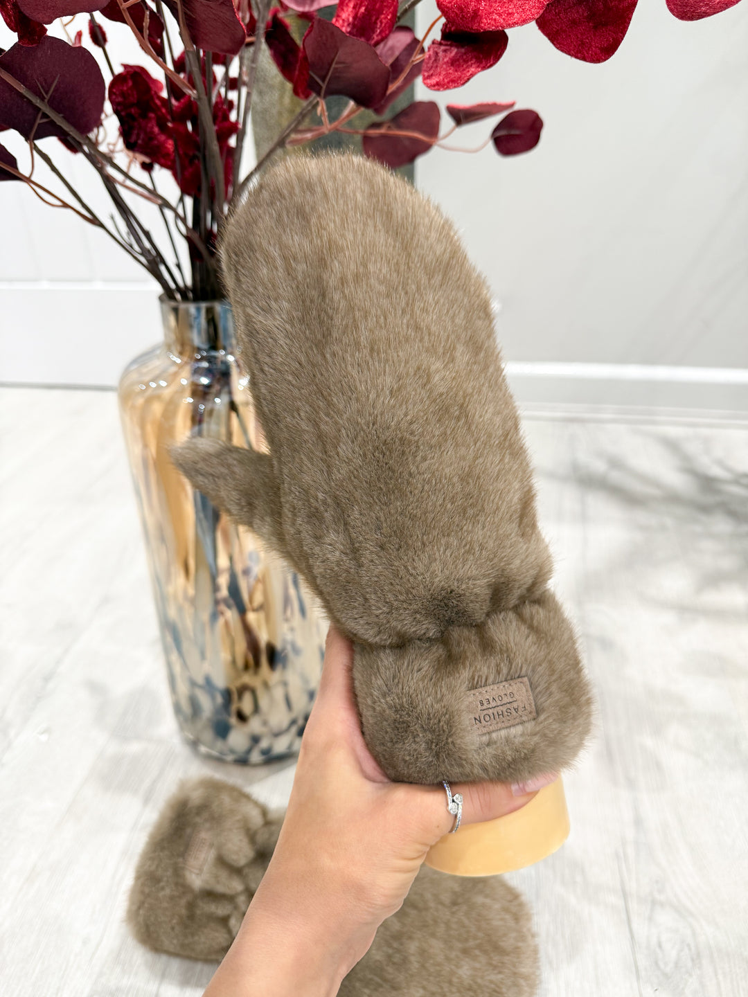 Faux Fur Mittens - Mocha